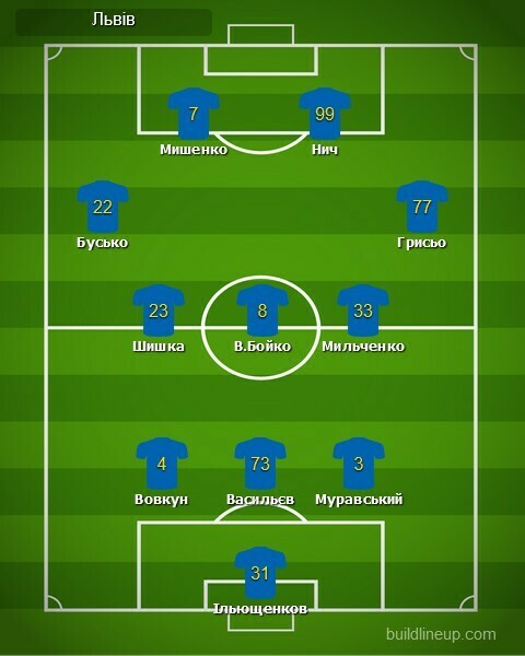 Запас: Пономаренко, Никитюк, Сасовський, Танчак, Р.Михайлів, Квас.