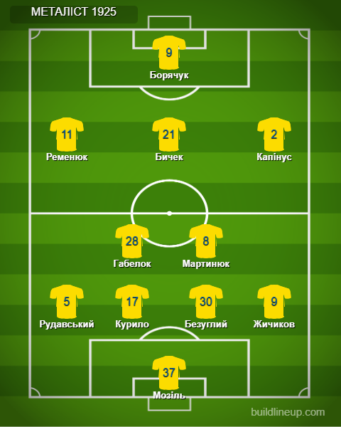 «Металіст 1925»: Мозіль - Жичиков, Безуглий, Курило, Рудавський - Мартинюк (Д. Кравченко, 71), Габелок - Капінус (Вачіберадзе, 67), Бичек (Р. Русин, 71), Ременюк - Борячук.