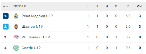 Юнацька ліга УЄФА. Турнірна таблиця групи F