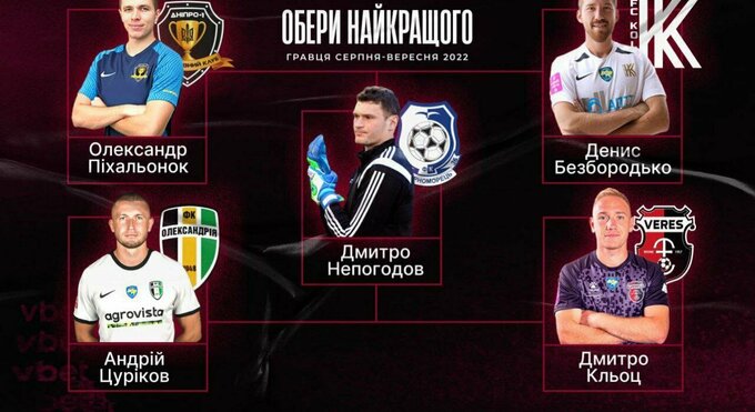 Серед гравців у голосуванні беруть участь Олександр Піхальонок (СК «Дніпро-1»), Денис Безбородько («Колос»), Андрій Цуріков («Олександрія»), Дмитро Кльоц («Верес») та Дмитро Непогодов («Чорноморець»).