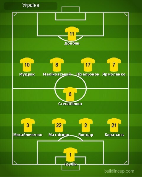 Заміни України: Сидорчук - 5,0; Яремчук - 5,0; Циганков - 5,0; Зубков - б/о; Ігнатенко - б/о.