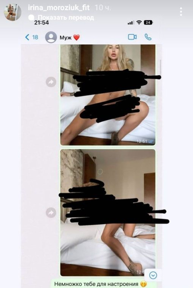 Ірина опублікувала на своїй сторінці в соціальній мережі Instagram скрін листування з Миколою Морозюком, на якому видно два досить відвертих її фото та підпис: