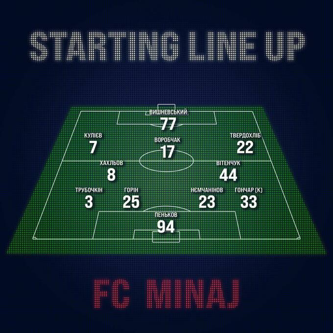 «Минай»: Пеньков – Трубочкін (Рогозинський, 84), Нємчанінов, Горін, Гончар – Вітенчук – Кулієв, Твердохліб (Паламар, 57), Хахльов (Селезньов, 83), Воробчак (Голуб, 70) – Вишневський (Колесник, 57).