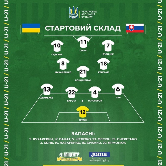 Словаччина U-21: Белко, Месик, Оберт, Немчик, Дятко, Кадак (Мислович, 62), Покорни, Лавринчик (Гольян, 62), Суслов, Стрелець (Галчик, 81), Капралік (Труса, 70).