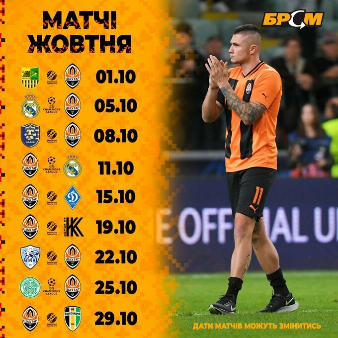ФОТО. Вогняний жовтень. Шахтар проведе 9 матчів, зіграє з Реалом та Динамо