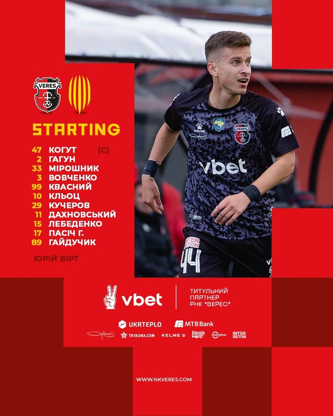 «Верес»: Когут – Квасний, Вовченко, Мірошник, Гагун – Кучеров, Кльоц – Г. Пасіч, Лебеденко (М. Шестаков, 83), Дахновський (В. Шарай, 83) – Гайдучик (Сергійчук, 68).
