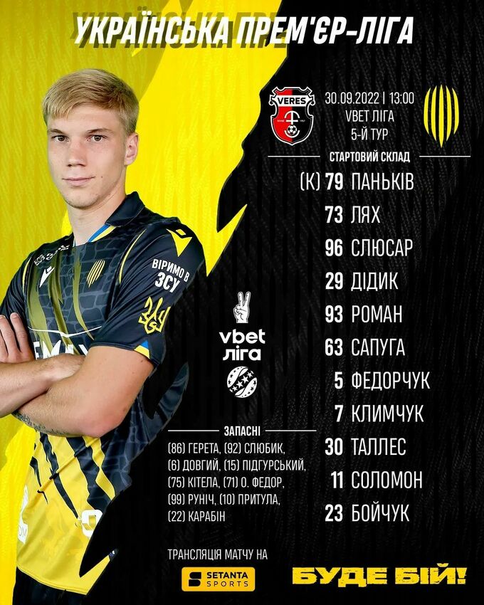 «Рух» (заміни): Руніч – б/о, Карабін – б/о, Притула – б/о.