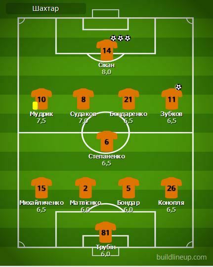 Заміни «Шахтаря»: Тейлор – 6,0; Назарина – 6,0; Швед – 6,5; Траоре – 6,5; Джурасек – 6,5.
