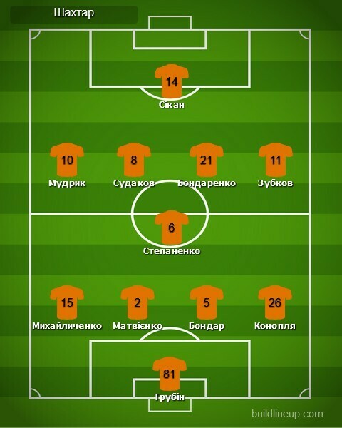 «Шахтар»: Трубін, Михайличенко, Бондар, Матвієнко, Конопля (Тейлор, 46), Степаненко (Назарина, 46), Судаков (Джурасек, 81), Мудрик, Бондаренко, Зубков (Швед, 60), Сікан (Траоре, 60).