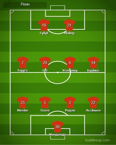 «Ренн»: Манданда, Мелінг, Теате, Родон, Ассіньон, Терр'є (Аблен, 79), Тет, Угочукву, Буріжо (Трюффер, 85), Гуйрі (Д.Дуе, 64), Майер (Калімуендо-Мюїнга, 64).