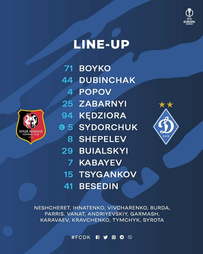 6 жовтня о 22:00 у матчі 3-го туру Ліги Європи грають французький «Ренн» та київське «Динамо».