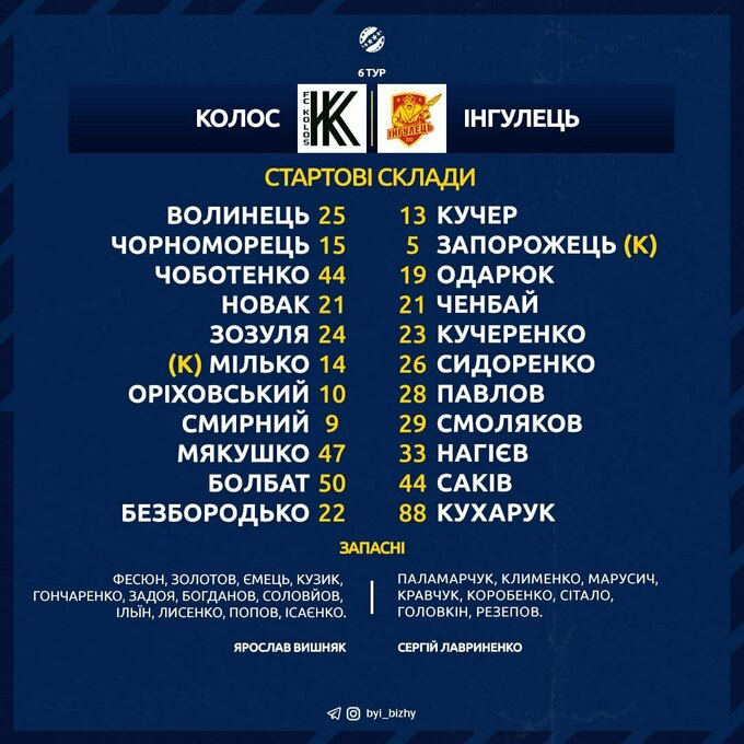Сьогодні, 7 жовтня, «Колос» у шостому турі УПЛ зіграє з «Інгульцем». Початок матчу – о 17:00.