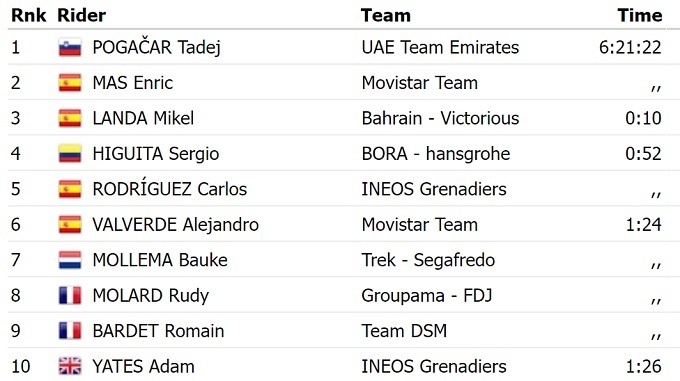 Гонка стала прощальною у кар'єрі двох живих легенд велоспорту – Алехандро Вальверде та Вінченцо Нібалі. Вони посіли сьогодні шосте та 24-те місця відповідно.