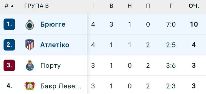 Наразі «Брюгге» лідирує у групі з 10 очками. «Атлетіко» розташувався на другому місці з 4 пунктами. До речі, завдяки цій нічиїй бельгійці гарантували собі місце в 1/8 фіналу ЛЧ.