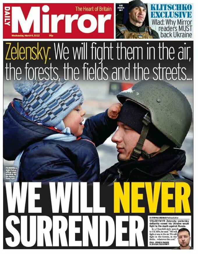 Неймовірно сильні слова від справжнього лідера. А головне, що він не ховається і сам показує приклад. Україна має підстави пишатися своїм лідером-президентом! І це неймовірно допомагає їй у боротьбі з російськими загарбниками (див. передовицю Mirror).