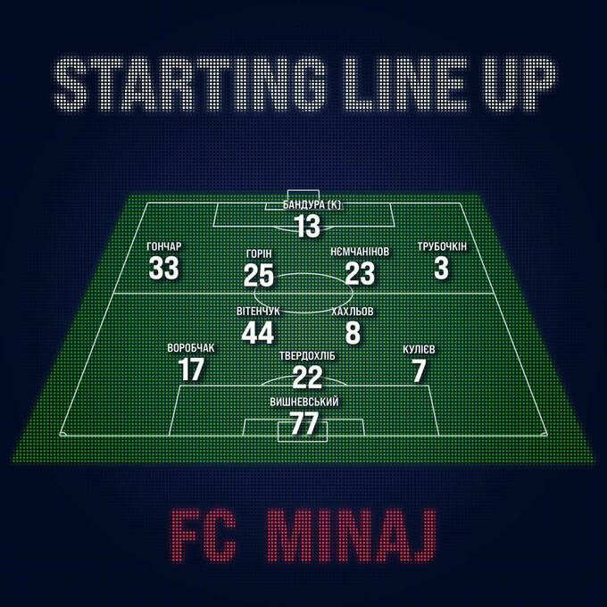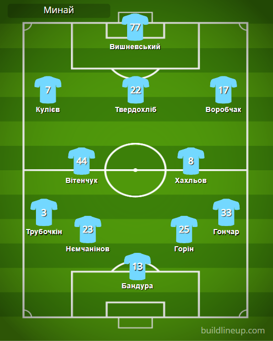 «Минай»: Бандура – Трубочкін (Дмитрук, 89), Нємчанінов, Горін (Чуєв, 81), Гончар – Вітенчук, Хахльов – Кулієв (Рогозинський, 60), Твердохліб, Воробчак – Вишневський (Коломоєць, 81).
