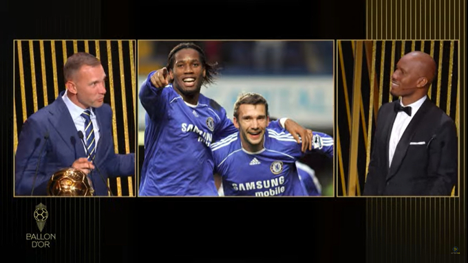 21:58. На сцені Андрій Шевченко. Жартує із Дідьє Дрогба. А потім каже важливі слова