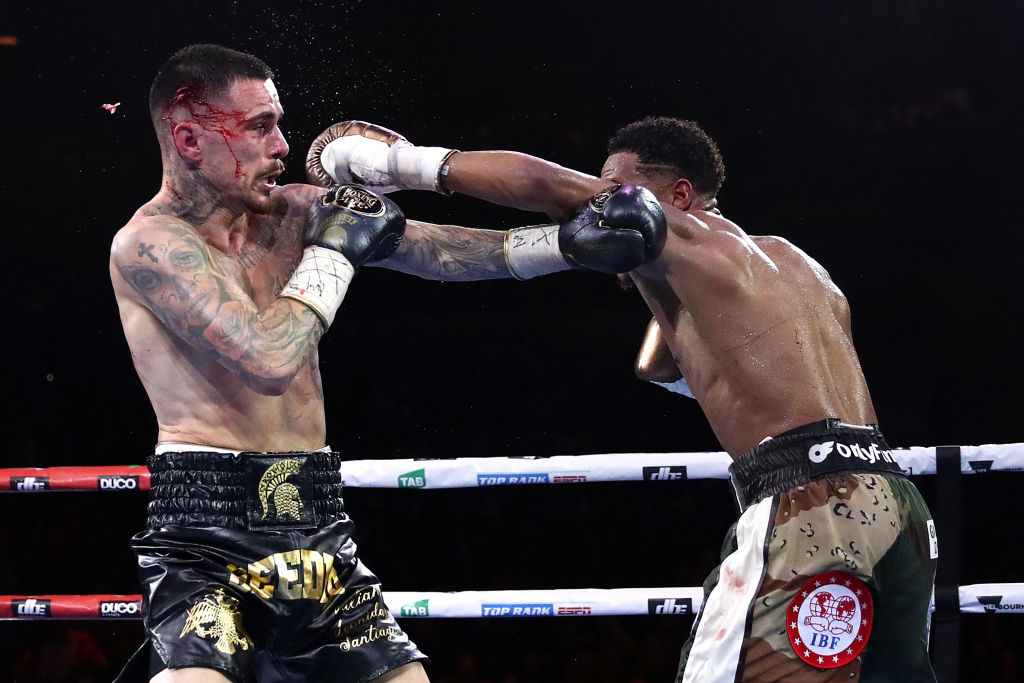 Девін Хейні (29-0, 15 КО) вперше у професійній кар’єрі захищав титул абсолютного чемпіона світу у легкій вазі, який він завоював у 2022 році, перемогою над австралійцем Джорджем Камбососом (20-2, 10 КО). Захищав він його проти цього ж самого Камбососа у тій же самій Австралії. Навіть місто бою було те ж саме – Мельбурн. І результат той же самий.