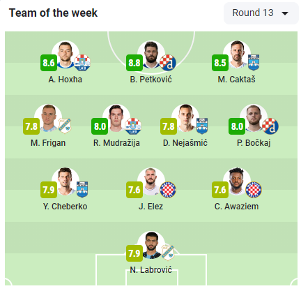 Символічна збірна 13-го туру чемпіонату Хорватії (SofaScore)
