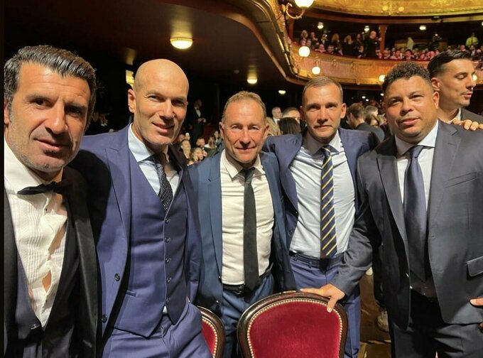 Після церемонії Шевченко сфотографувався з легендами 90-х і 2000-х: Луїшем Фігу, Зінедіном Зіданом та Роналдо. Також на фото є і більш досвідчена легенда – француз Жан-П'єр Папен.