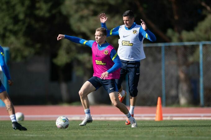 На заверщення тренування дніпряни провели командну двосторонку – «білі» проти «рожевих». З'ясування стосунків завершилося з рахунком 3:2 на користь «білих», у складі яких грав один із тренерів команди Олександр Грицай.