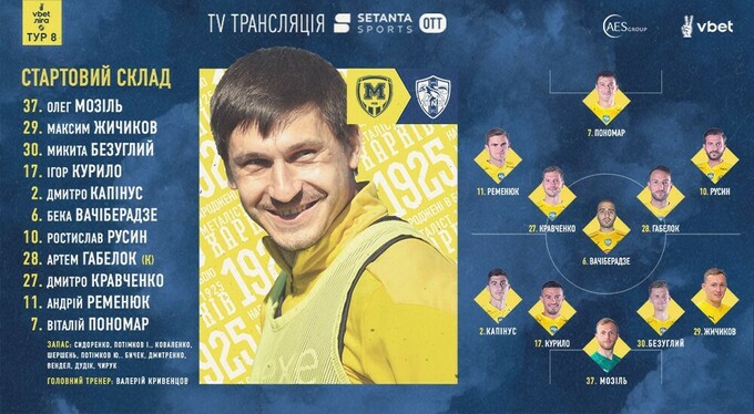 Запасні: Пеньков, Кемкін, Паламар, Касімов, Колесник, Кравчук, Голуб.