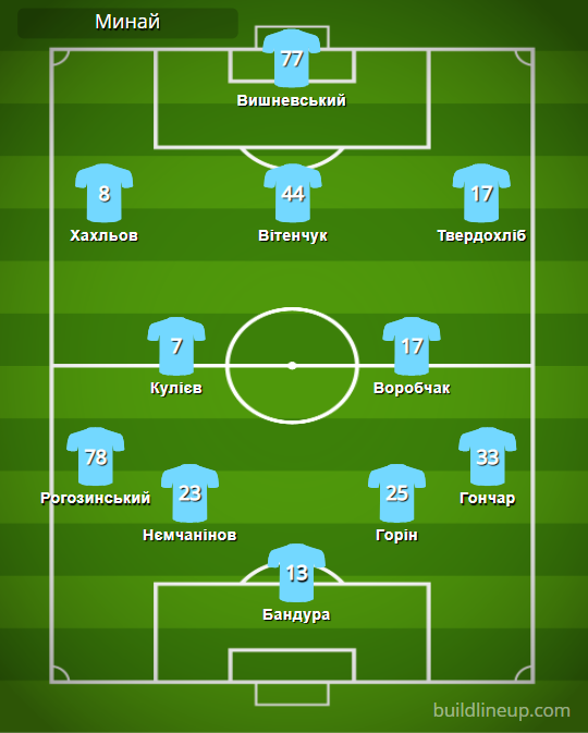 «Минай»: Бандура – Рогозинський (Трубочкін, 66), Нємчанінов, Горін, Гончар (Дмитрук, 86) – Хахльов (Байдал, 87), Вітенчук – Кулієв (Чуєв, 81), Твердохліб, Воробчак – Вишневський (Коломоєць, 80).