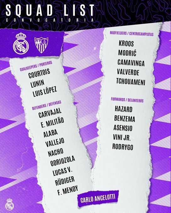 «Реал» оголосив заявку гравців на матч Ла Ліги проти «Севільї». Вперше за місяць у списку доступних футболістів з'явився основний воротар Тібо Куртуа.
