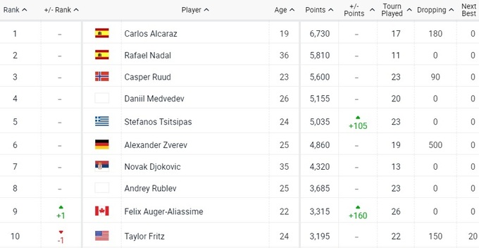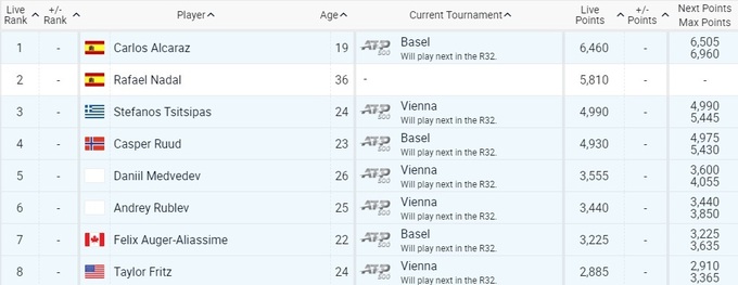 Минулого тижня чоловіки зіграли три турніри ATP 250. В Антверпені переміг Фелікс Оже-Альяссім, він перемістився з десятого місця на дев'яте. Це єдина зміна у топ-10.