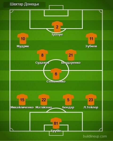 «Шахтар»: Трубін, Михайличенко, Матвієнко, Бондар, Л.Тейлор, Степаненко, Судаков (Кривцов, 90), Бондаренко, Мудрик (Петряк, 90), Траоре (Сікан, 57), Зубков