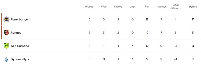 Як і поєдинок АЕК Ларнака – «Динамо», паралельний матч групи В у п'ятому турі Ліги Європи між лідерами квартету, «Фенербахче» та «Ренном», завершився вражаючим камбеком та рахунком 3:3. Турецький клуб зумів відігратися з рахунку 0:3 і, як і «Динамо», забив два голи після 80-ї хвилини.