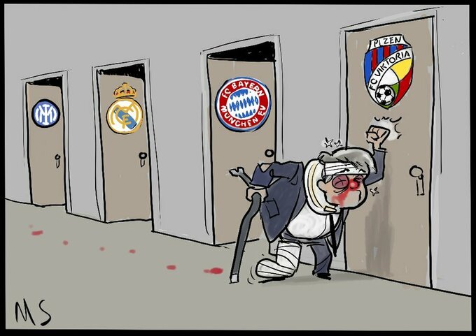 КАРИКАТУРА ДНЯ. Пошарпана Барселона стукає у двері до суперників