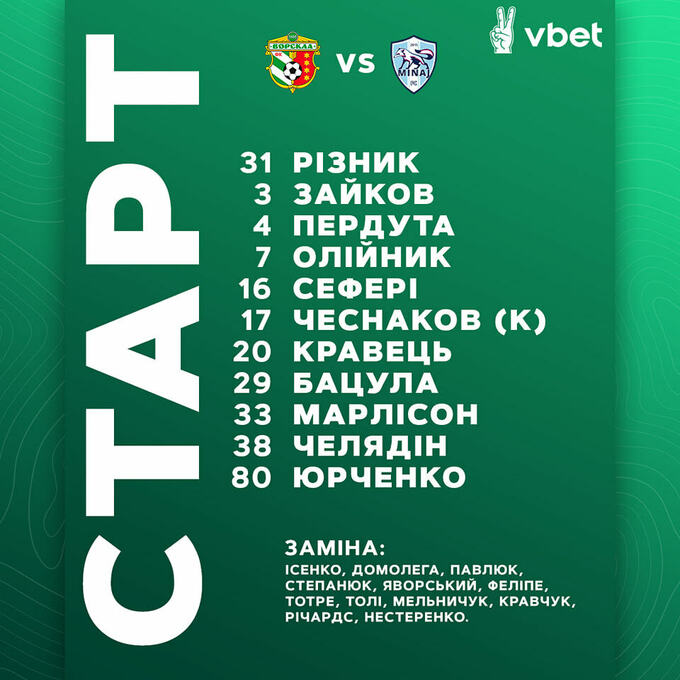 Запасні: Ісенко, Домолега, Павлюк, Яворський, Мельничук, Тотре, А. Кравчук, Річардс.