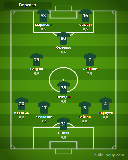 «Ворскла» (заміни): Толі – 6,0, Феліпе – б/о, Нестеренко – б/о, Степанюк – б/о.