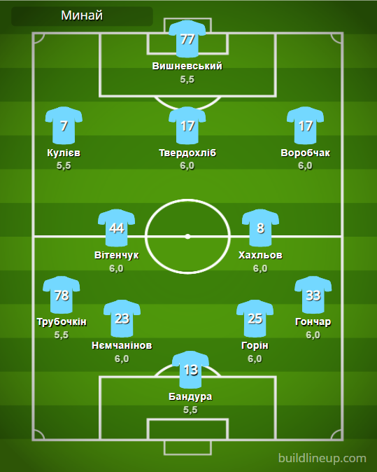«Минай» (заміни): Колесник – 5,5, Коломоєць – б/о, Байдал – б/о, Паламар – б/о.