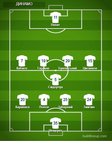 «Динамо»: Нещерет - Тимчик (Кендзьора, 64), Забарний, Попов, Караваєв (Вівчаренко, 64) - Сидорчук - Циганков, Буяльський (Шепелєв, 82), Гармаш (Лонвейк, 71), Кабаєв (Перріс, 64) - Ванат.