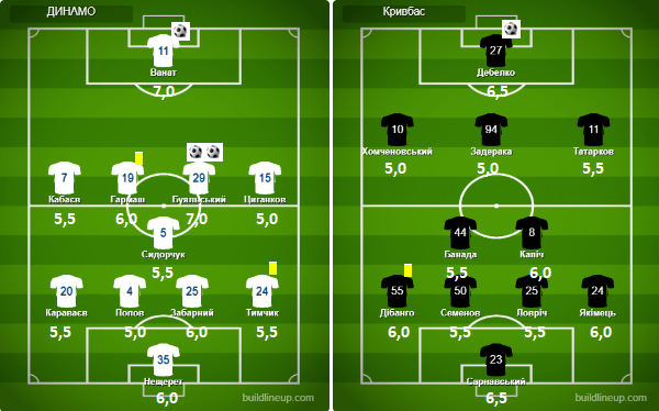 Заміни Кривбаса: Кораблін - 5,0, Д. Шевченко - 5,0, Микитишин - 5,5, Устименко - б/о.