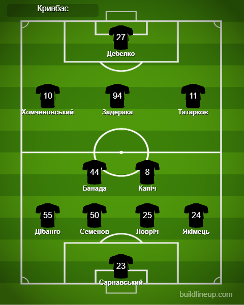 «Кривбас»: Сарнавський - Якімець, Ловріч, Семенов, Дібанго - Банада (Д. Шевченко, 66), Капіч - Татарков (Кораблін, 35, Устименко, 87), Задерака (Микитишин, 66), Хомченовський - Дебелко.