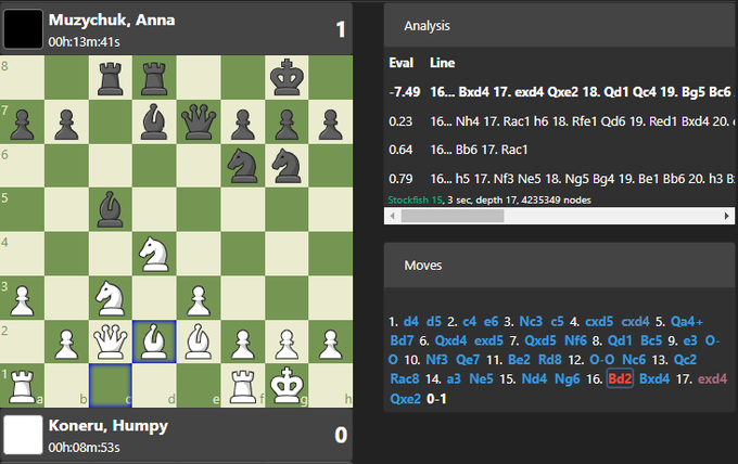 Humpy Koneru blunders with 16.Bd2 and has to resign one move later; can you spot Anna's immediately decisive reply? #FIDEWomenCandidates pic.twitter.com/txQs4ToDTx