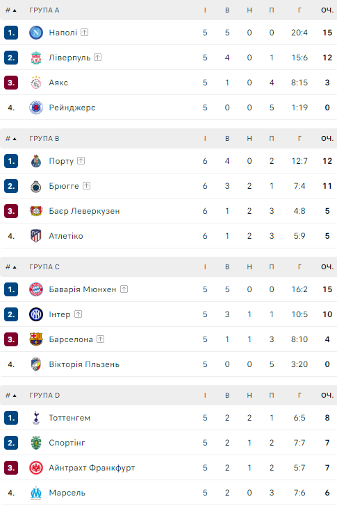 Турнірні таблиці