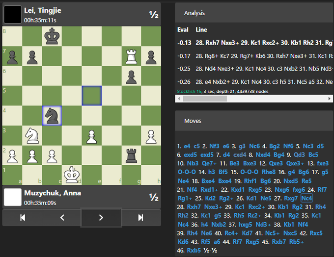 Анна Музичук (Україна) – Лей Тінцзе (Китай) – 0.5:0.5