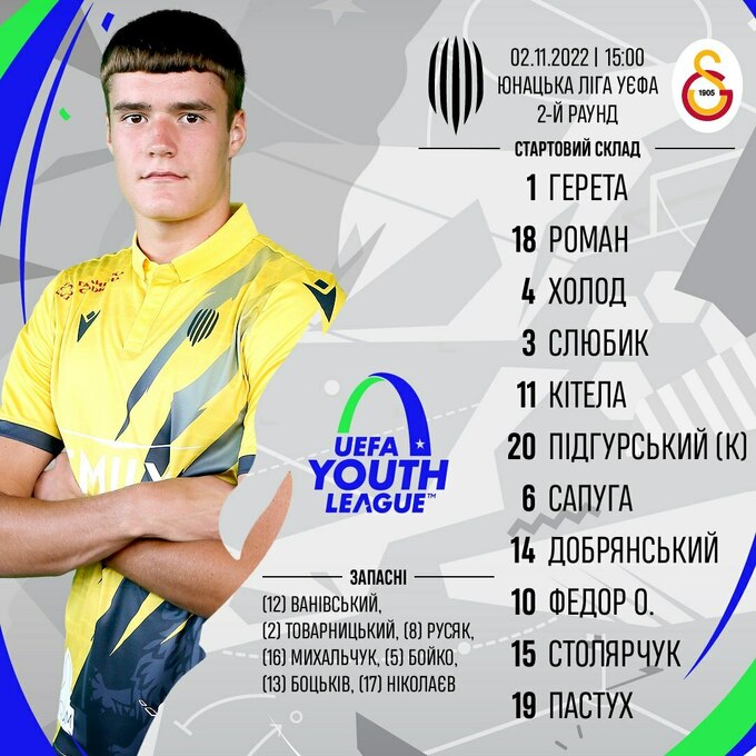 Відомий стартовий склад Руху U-19 на матч-відповідь проти Галатасарая