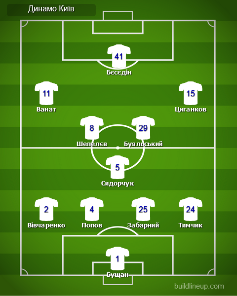 «Динамо» Київ: Бущан, Вівчаренко (Кендзьора, 71), Попов, Забарний, Тимчик, Шепелєв (Гармаш, 46), Сидорчук, Буяльський (Караваєв, 70), Ванат, Циганков (Діалло, 86), Бєсєдін (Кабаєв, 46).