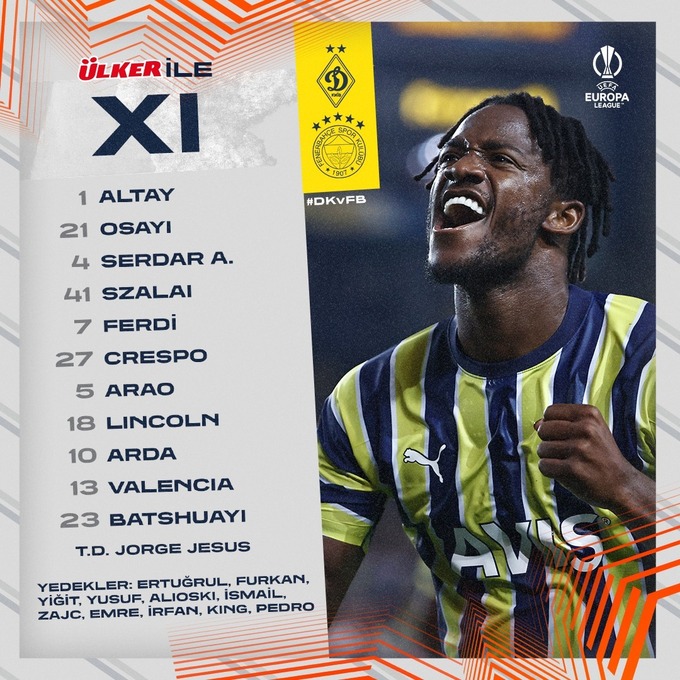 «Фенербахче»: Баїндир, Осаї-Семюел, Салаї, Азіз, Кадиоглу, Гюлер (Кахведжи, 64), Вілліан Арао (Зайц, 73), Крешпу, Лінкольн (Аліоскі, 78), Батшуаї (Жоао Педро, 64), Валенсія (Мор, 64).