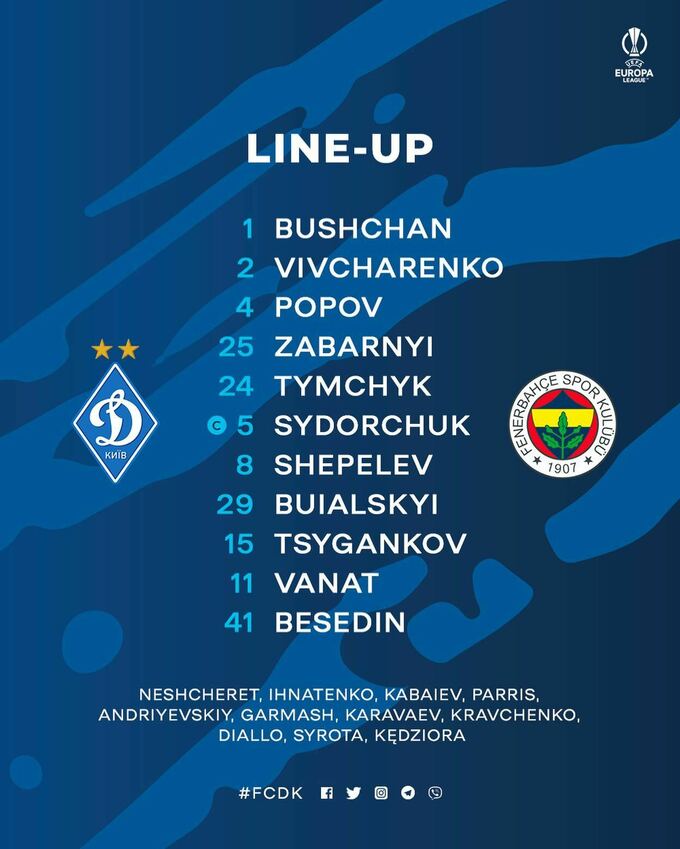 У четвер, 3 листопада, відбудеться поєдинок групового раунду Ліги Європи, в якому зустрінуться київське «Динамо» та стамбульський «Фенербахче». Матч пройде у польському Кракові на стадіоні «Краковія», стартовий свисток пролунає о 22:00 за київським часом.