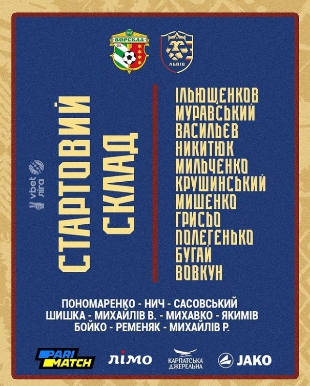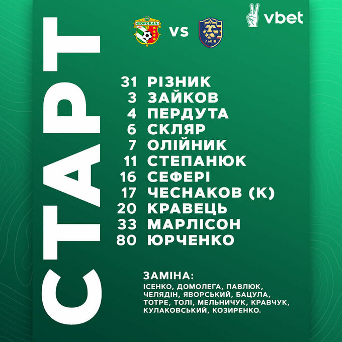 Заміни у Львова: В.Михайлів замість Вовкуна, та Ременяк замість Полегенька.