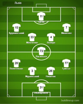 «Львів»: Ільющенков, Муравський, Васильєв, Никитюк, Мільченко, Крушинський, Мишенко (Бойко, 25), Грисьо, Полегенько (Ременяк, 74), Бугай (Нич, 55), Вовкун (В.Михайлів, 74).