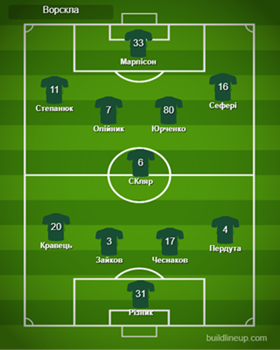 «Ворскла»: Різник, Зайков, Пердута, Скляр, Олійник (Кулаковський, 90+3), Степанюк (Челядін, 73), Сефері, Чеснаков (Яворський, 34), Кравець, Марлісон, Юрченко (Бацула, 73).