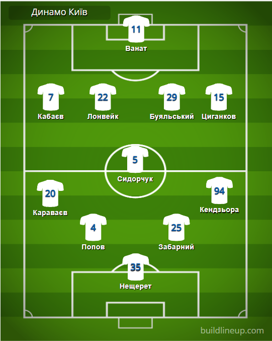 «Динамо» Київ: Нещерет – Караваєв (Вівчаренко, 63), Попов (Сирота, 46), Забарний, Кендзьора (М. Кравченко, 69) – Сидорчук (Перріс, 80) – Кабаєв (Гармаш, 46), Лонвейк, Буяльський, Циганков – Ванат.
