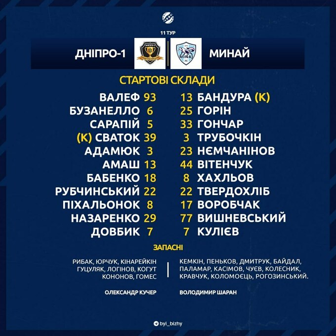 Сьогодні, 6 листопада, «Дніпро-1» у матчі 11-го туру УПЛ прийме «Минай». Початок матчу – о 13:00 за Києвом.